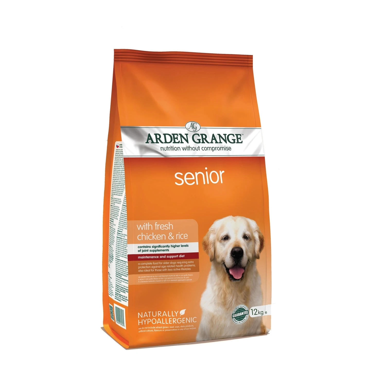 Arden Grange Senior dog food is naturally hypoallergenic and contains boosted levels of joint support to aid older dogs