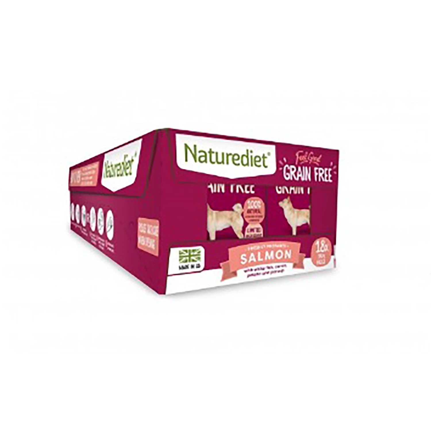 Naturediet Grain Free Salmon is an ideal meal for dogs with sensitive digestion, this complete and nutritionally balanced meal is rich in essential omega fatty acids to help improve skin and coat.