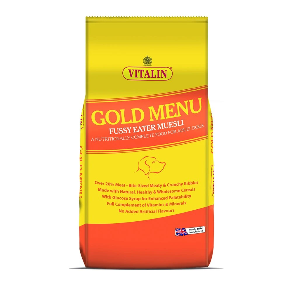Vitalin Gold Menu is a nutritionally complete balanced diet for fussy eaters and is made with a mixture of crunchy kibbles and meaty chunks basted with a delicious meaty coating and does not require any additional meat or supplements.
