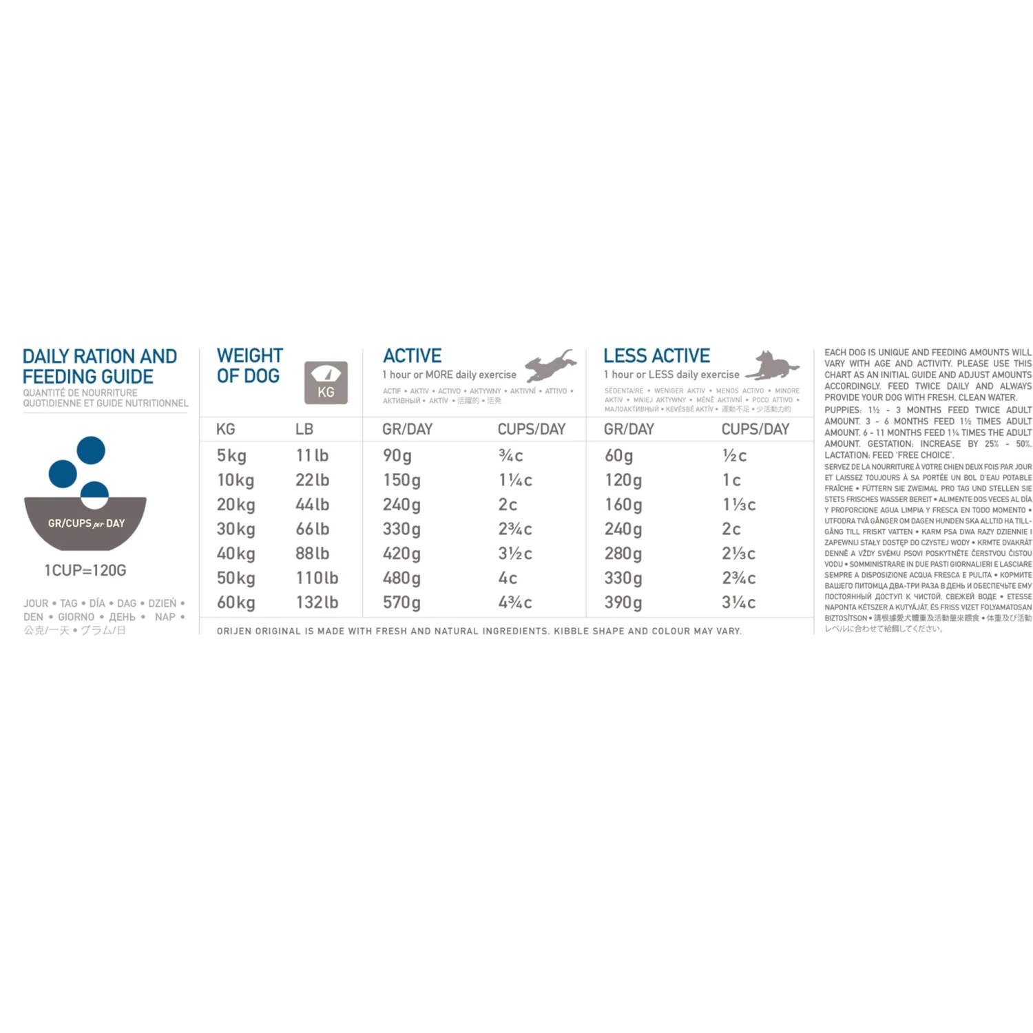 Orijen Original dog food is made from animals deemed fit for human consumption, prior to inclusion in our foods and provides a natural source of virtually every nutrient your dog needs to thrive.