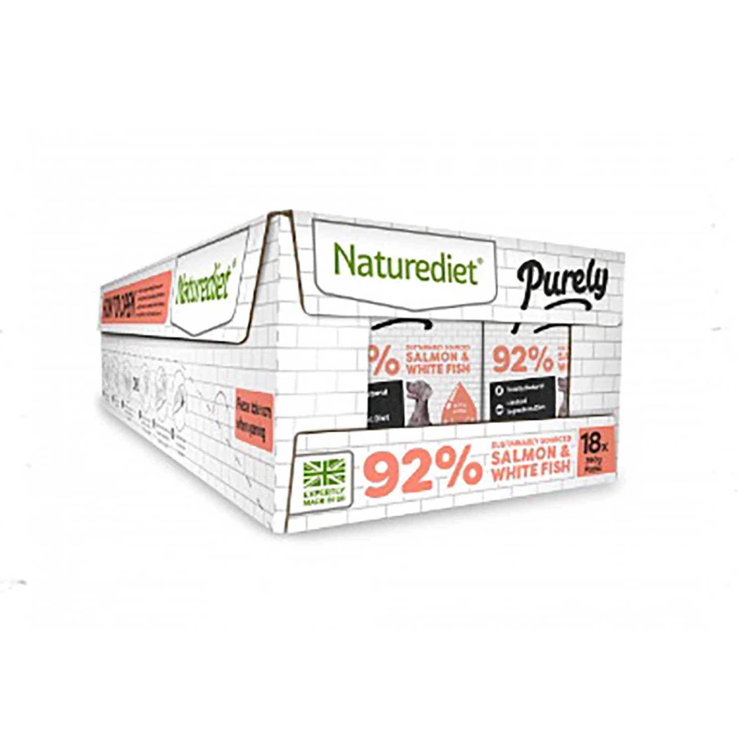 Naturediet Purely Salmon & White Fish is freshly prepared and gently steam cooked with a little water and can be fed as a complete meal or with a high quality mixer.